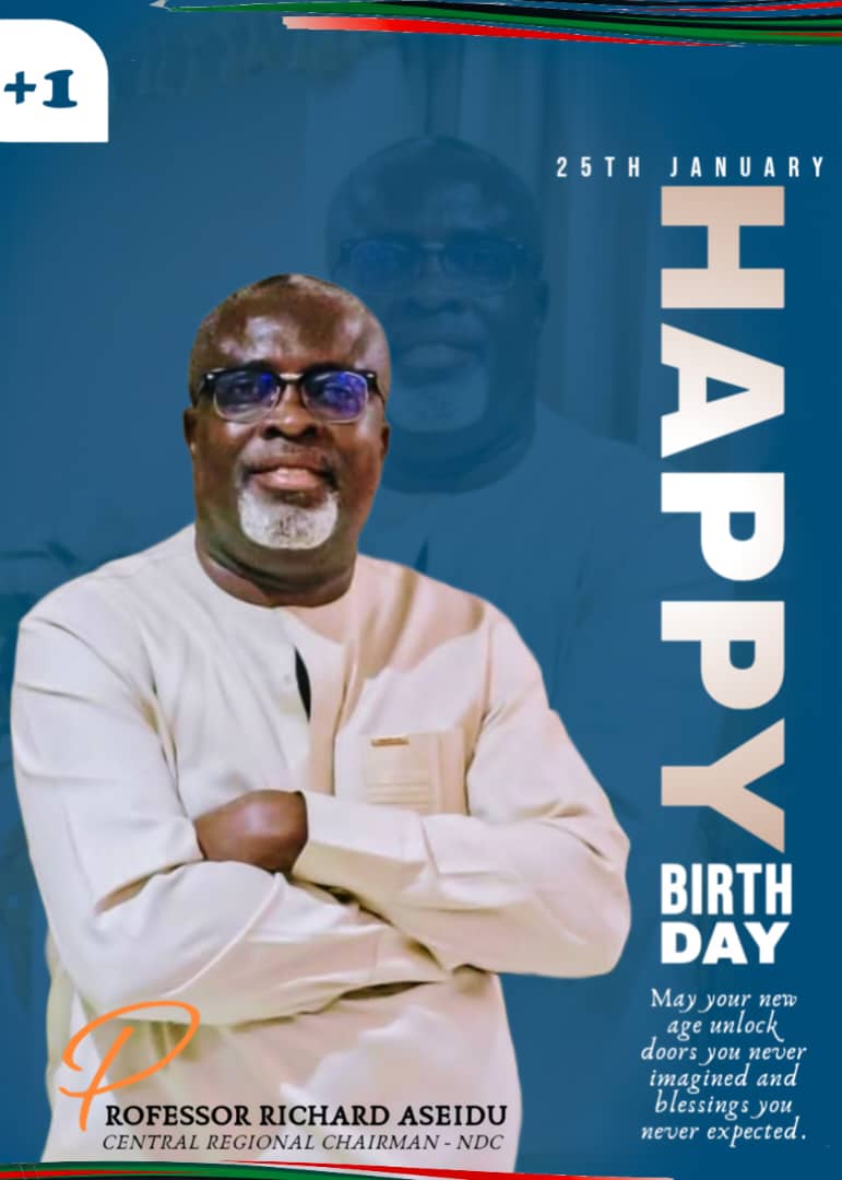 The central regional chairman of Ndc party Noble Dr prof Richard Kofi Asiedu as today mark your birthday Wishing a very Happy Birthday to our beloved Chairman. You are not just a leader, but a true inspiration. May God bless you with good health and long life.” More wins sir