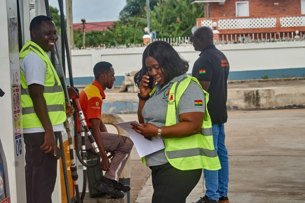 Led by our Regional Monitoring and Evaluation Officer, Mrs Jane Adu Sekyim, the Regional Public Relations Officer, Mr Samuel Essel Duku and the Deputy Head of the Regional Rapid Response Team, Mr Douglas Hammond, the Regional office has intensified our usual hazard mapping and identification exercise at fuel and gas filling stations within Region, commencing from the KEEA Municipality and the Cape Coast Metropolis.