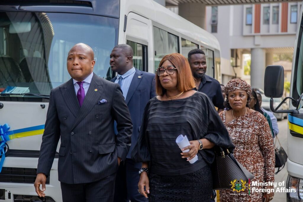 Hon. Samuel Okudzeto Ablakwa today presented six (6) brand-new Toyota Coaster buses (2025 model) to staff of the Ministry of Foreign Affairs.