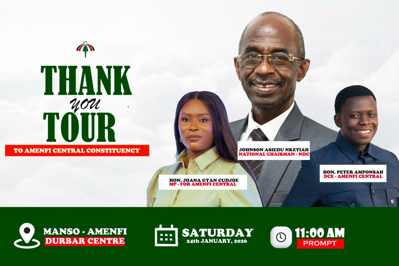 The National Chairman of the National Democratic Congress (NDC), Hon. Johnson Asiedu Nketiah, is on a Thank You Tour to the Amenfi Central Constituency.